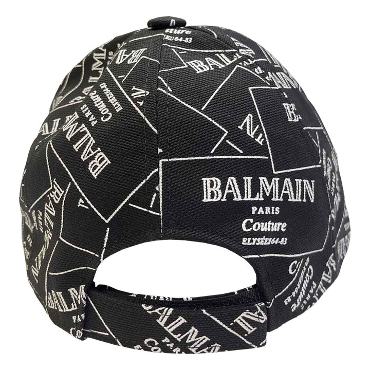 Top off any outfit with bold designer flair in this unisex black cap from Balmain. Crafted from durable cotton, it features a classic six-panel design with a curved brim and adjustable back strap for a comfortable fit. The standout Balmain Paris logo is prominently printed at the front, adding an unmistakable touch of luxury. Perfect for everyday wear, this cap is a versatile accessory for both boys and girls.