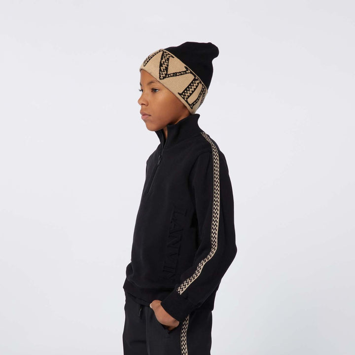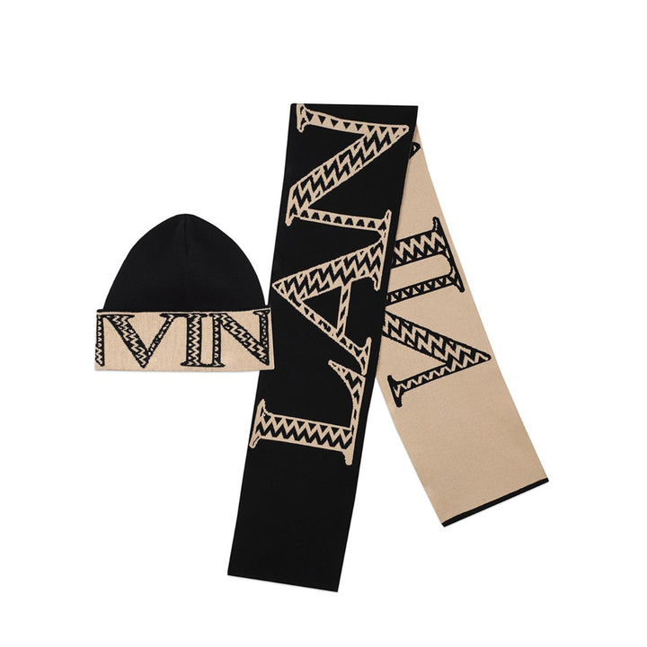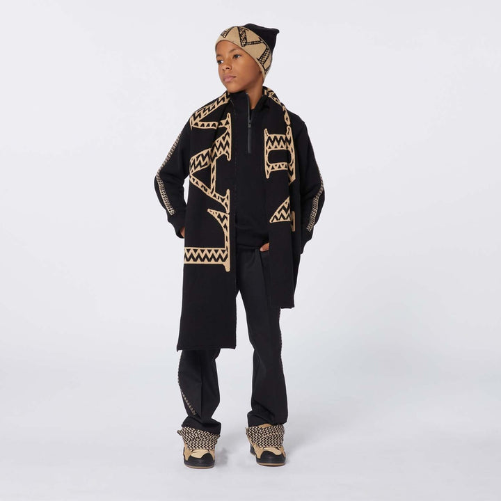 Unisex Black & Beige Logo-Jacquard Scarf & Hat Set