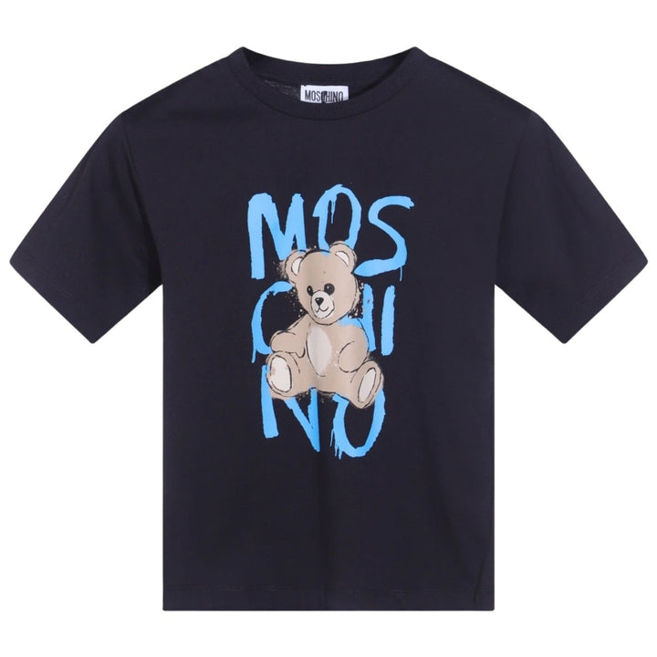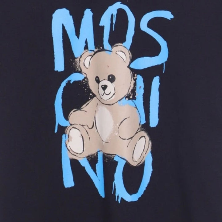 This Moschino unisex black graphic-print T-shirt features a bold logo design on soft cotton fabric. Stylish and comfortable, it is perfect for adding a designer edge to everyday outfits.