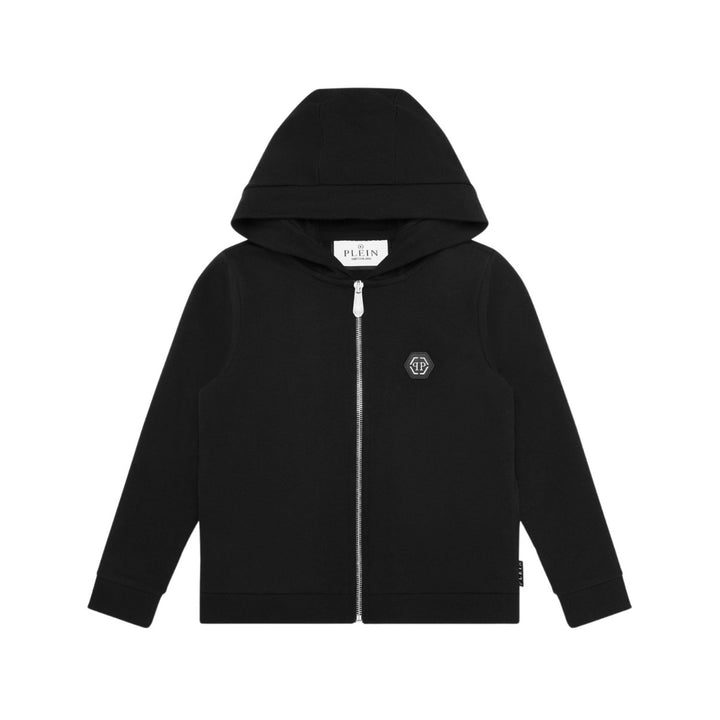 Unisex Black Logo-Patch Zip-Up Hoodie