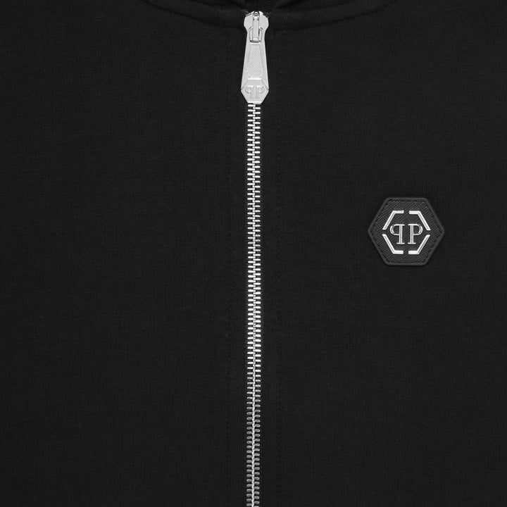 Unisex Black Logo-Patch Zip-Up Hoodies