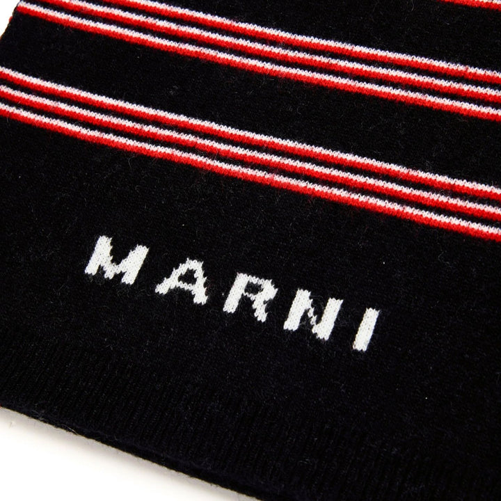 Scarf made of striped knitted Punto Milano. Institutional logo in contrasting colour on the turn-up. Made of wool blend. A versatile and easy-to-match accessory.