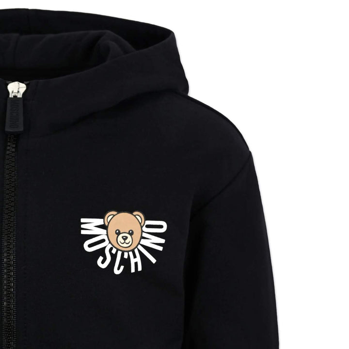 Add a playful touch to his outerwear with this black jacket from Moschino, featuring the brands iconic Teddy Bear logo print. Crafted from quality fabric, it combines style and warmth for a standout everyday layer.