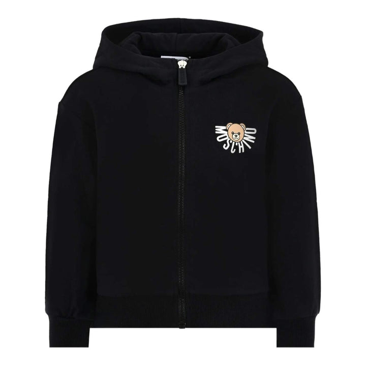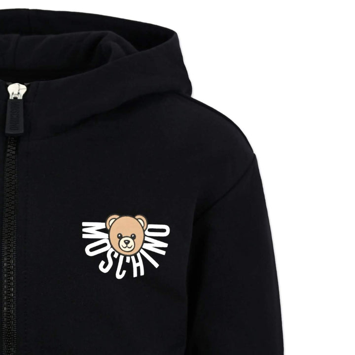 Add a playful touch to his outerwear with this black jacket from Moschino, featuring the brands iconic Teddy Bear logo print. Crafted from quality fabric, it combines style and warmth for a standout everyday layer.