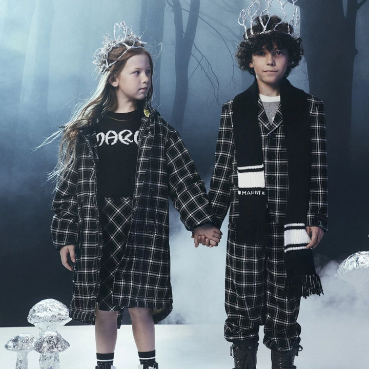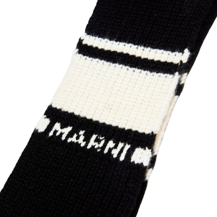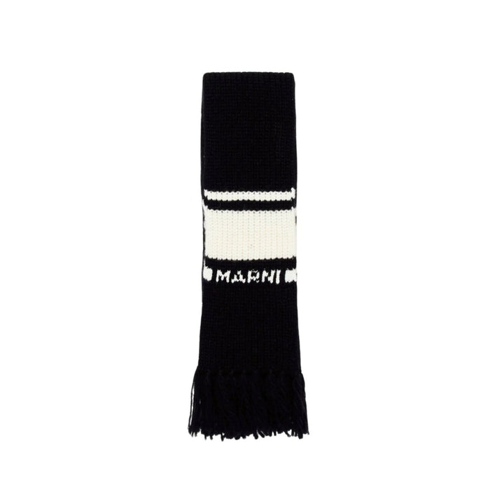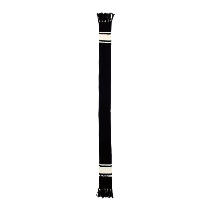Scarf made of wool blend. Contrasting colour logoed stripes in alpaca. Fringes at the ends. A versatile and easy-to-match accessory.\