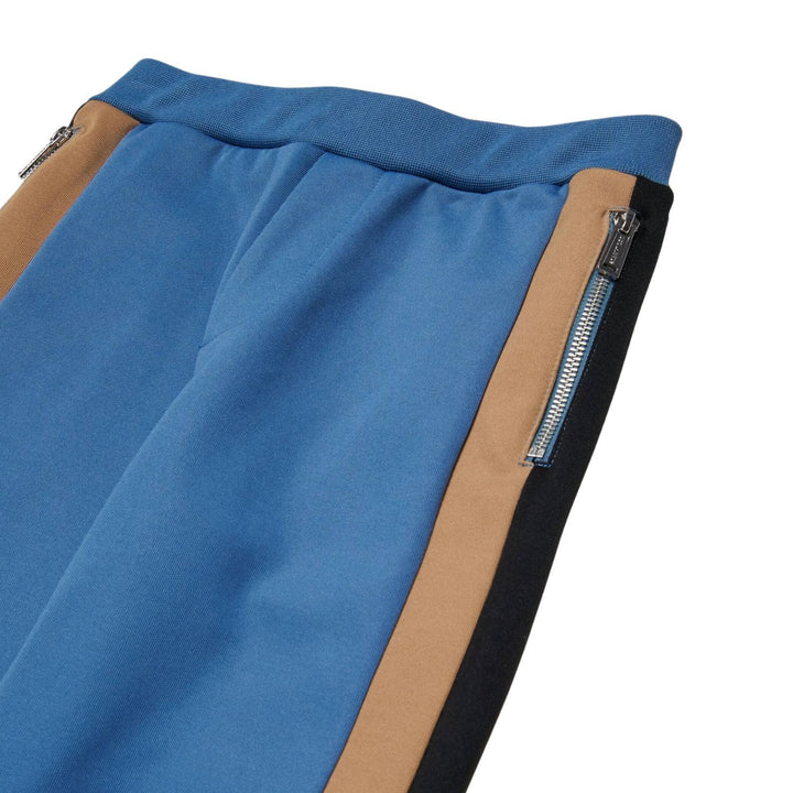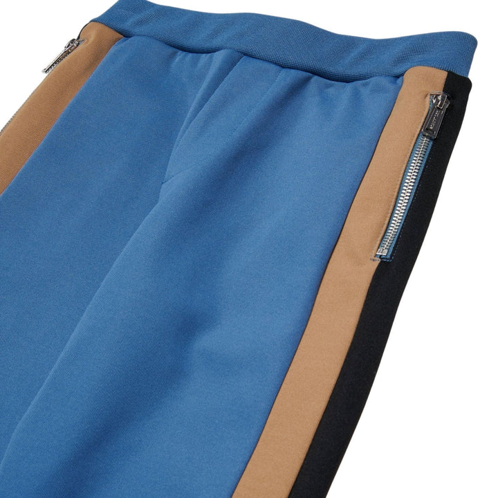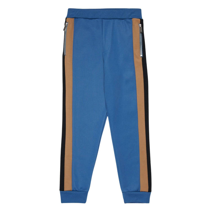 Elevating casual wear, these boys Blue Stripe Logo-Print Trousers are crafted from premium fabric with sleek stripe detailing and a bold logo accent. A refined blend of comfort and contemporary luxury for versatile styling.