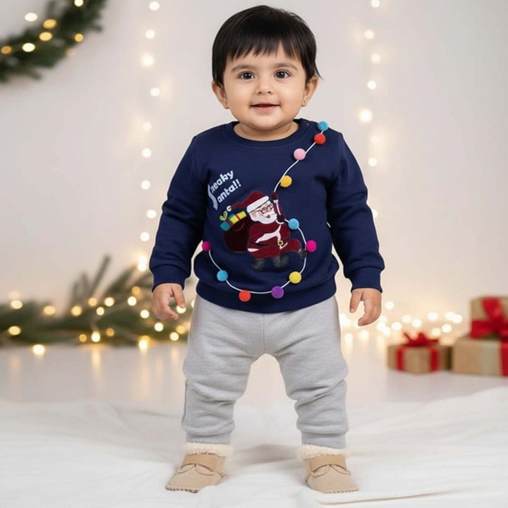 Unisex Blue Santa Pompom Sweatshirt adds a cheerful festive vibe with its bright blue color and playful Santa pompom design. Made from soft, cozy fabric, it keeps kids warm and comfortable, perfect for Christmas celebrations and joyful winter days.