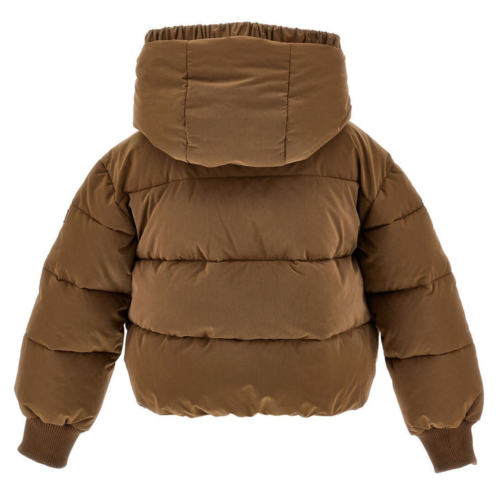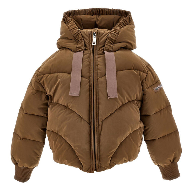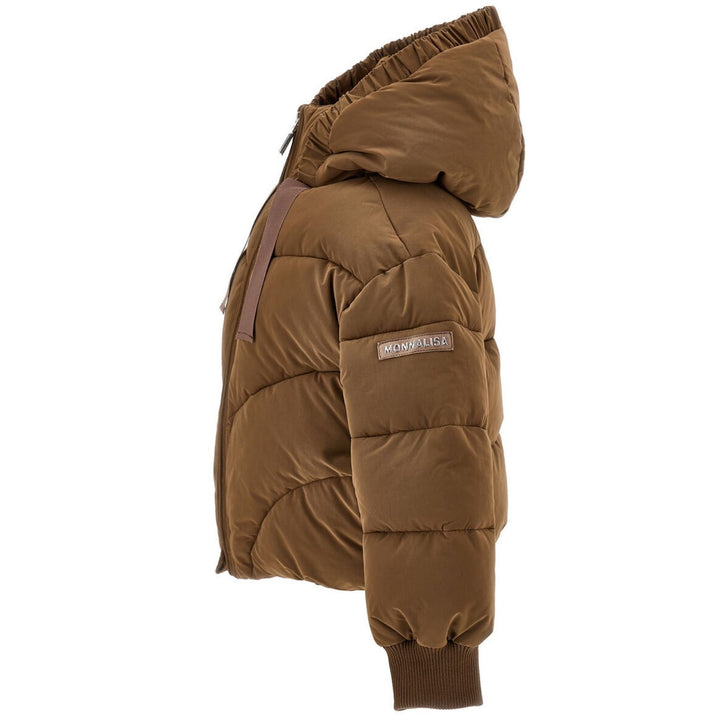 A cozy brown puffer jacket designed for both boys and girls, crafted with Monnalisa’s signature touch of warmth, comfort, and timeless style.