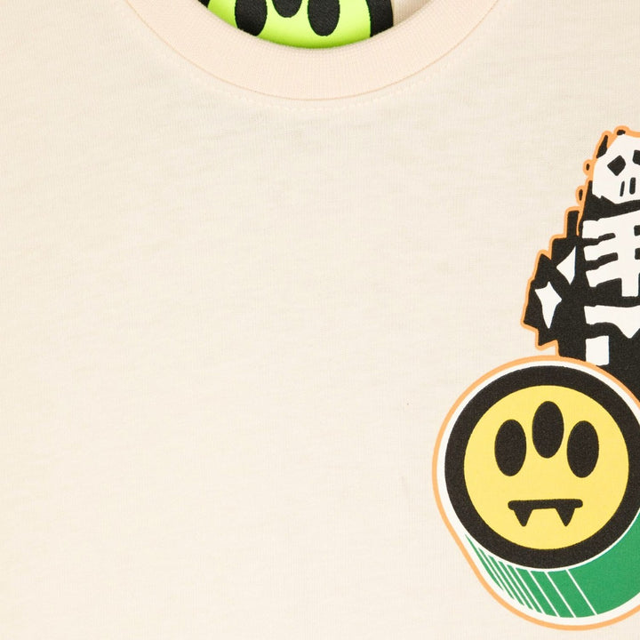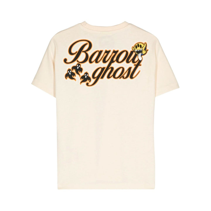 Unisex Cream Logo-Print Half-Sleeves T-Shirt