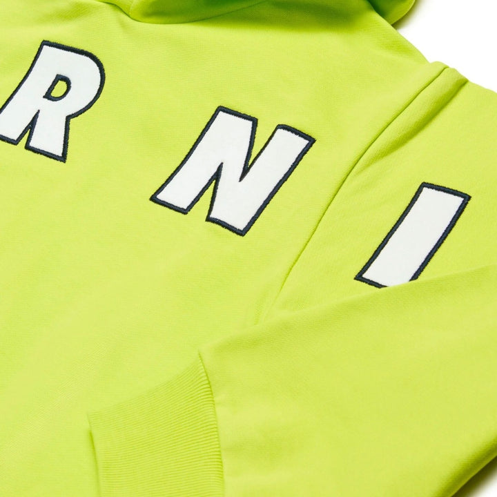 Long-sleeved hooded sweatshirt. Features an institutional logo on the front with contrasting colour embroidery that continues on the sleeves. Ribbed construction on cuffs and hem. Made of 100 % cotton. An easy-to-match casual option.