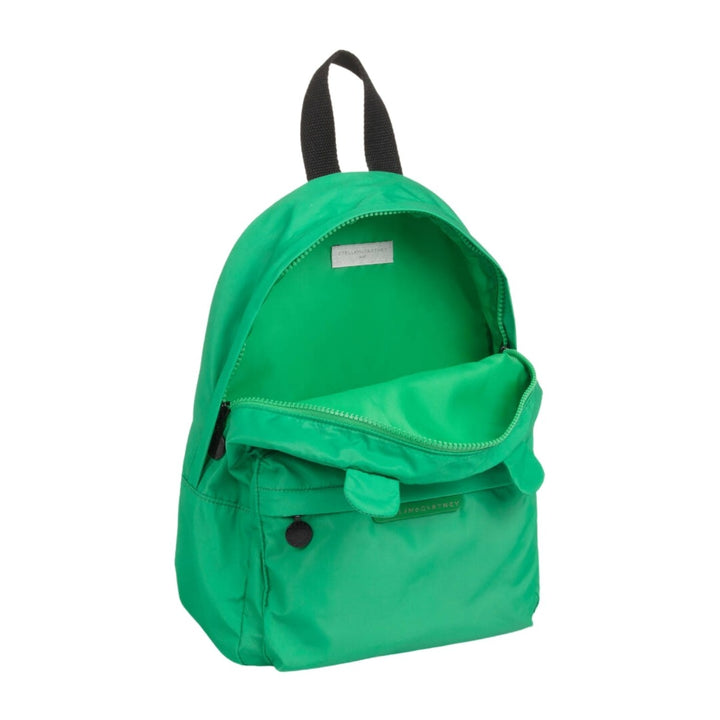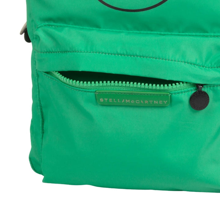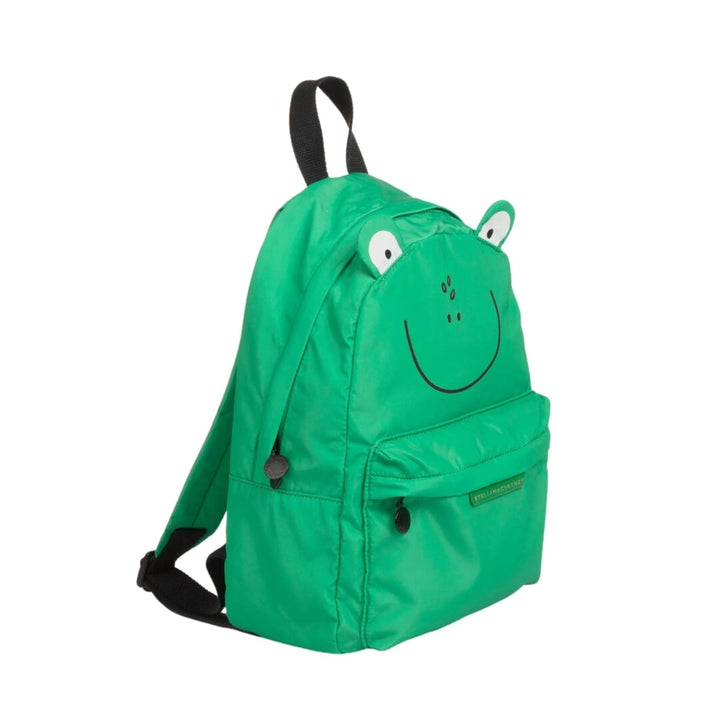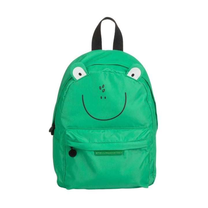 Fun green backpack for boys and girls by Stella McCartney Kids, in a characterful smiling frog design with cute 3D eyes. Smooth and lightweight, this practical bag has a main compartment and a branded front pocket, both fastening with the designer's signature medallion zipper. The shoulder straps are padded and adjustable for carrying comfort.