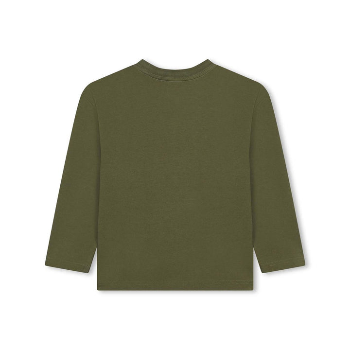 Green T-shirt for boys and girls by MARC JACOBS, made in soft organic cotton jersey. Casual and comfortable, this cool top has raw edges on the seams and a black smudged logo on the front for a statement designer finish.