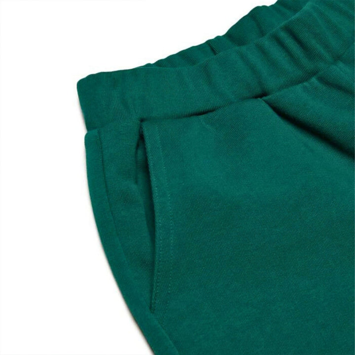 Fleece shorts with elasticated waist. Made of 1% cotton. Featuring a contrasting color institutional logo. American-style pockets on the front.
