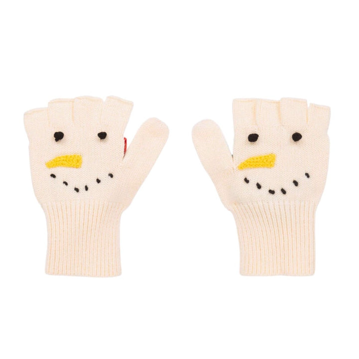 Unisex Ivory Knitted Cotton Snowman Gloves