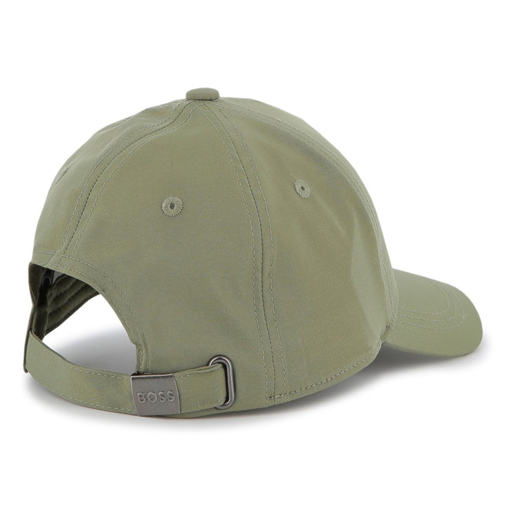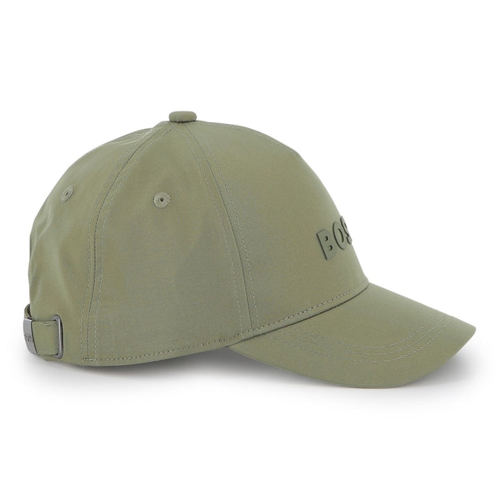 A casual khaki green baseball cap for girls and boys by BOSS. Made in smooth twill with a stiff peak, it features a rubberised tonal logo on the front for a distinctive look. The back strap has a branded metal adjustor, offering a comfortable fit.
