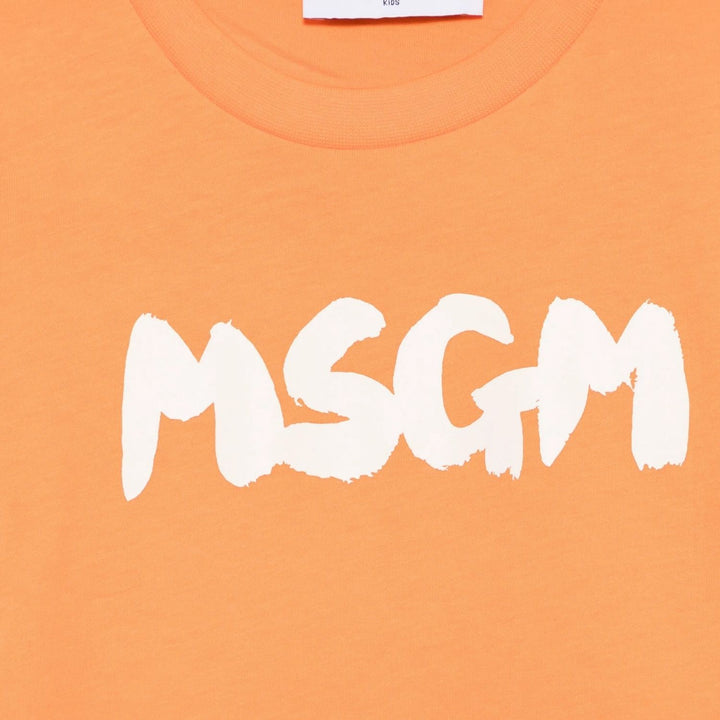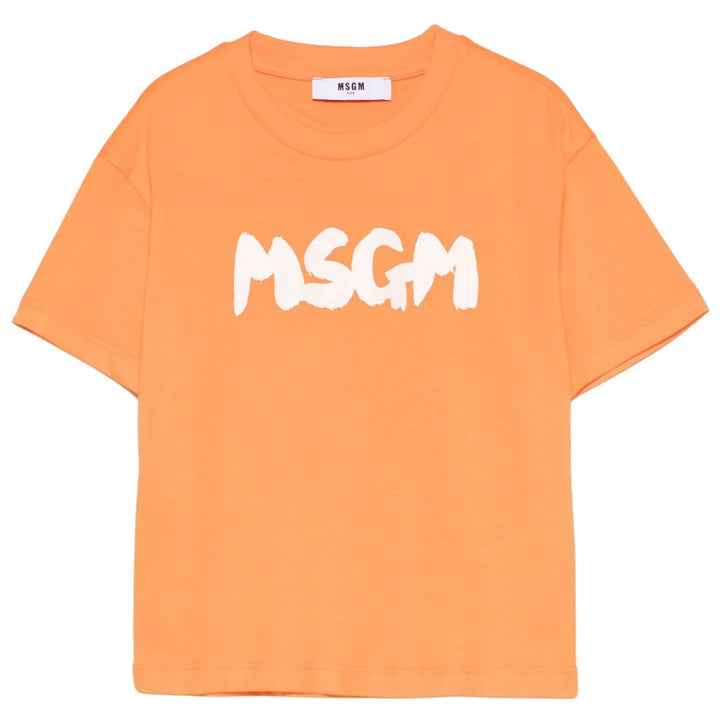 Bright and bold, this tangerine orange T-shirt from MSGM Kids features a classic crew neck, short sleeves, and a straight hem. Made from 1% cotton, its finished with a standout logo print for a cool, casual look.
