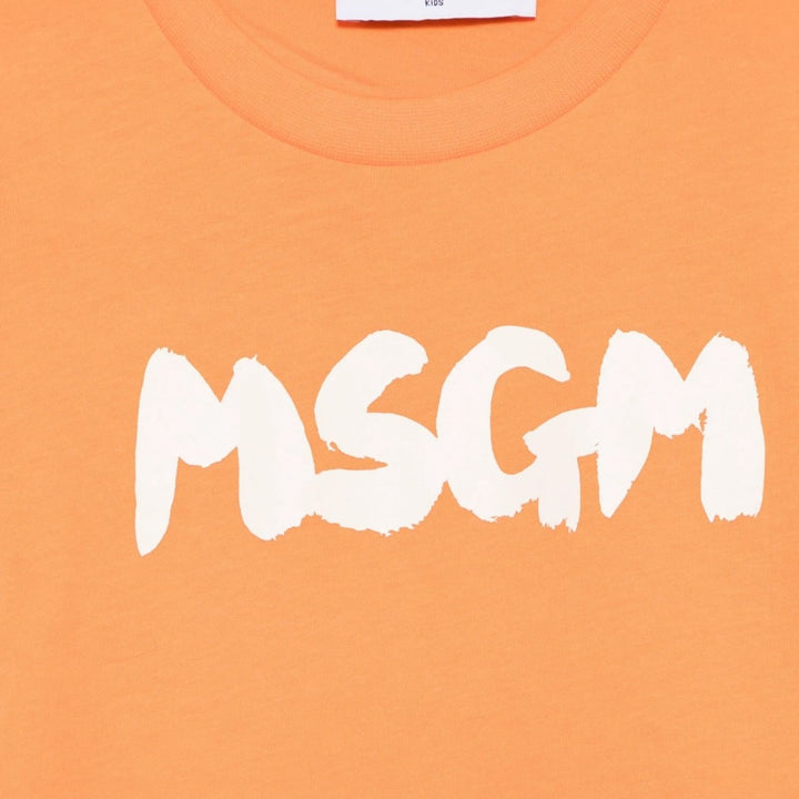 Bright and bold, this tangerine orange T-shirt from MSGM Kids features a classic crew neck, short sleeves, and a straight hem. Made from 100% cotton, its finished with a standout logo print for a cool, casual look.