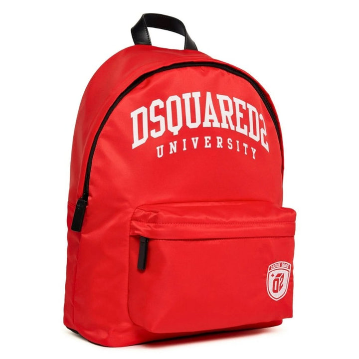 Shiny backpack with main compartment and front pocket, both with zip. Padded shoulder straps. Handle at the top. Featuring contrasting shield and college logo on the front. A perfect accessory for everyday occasions.