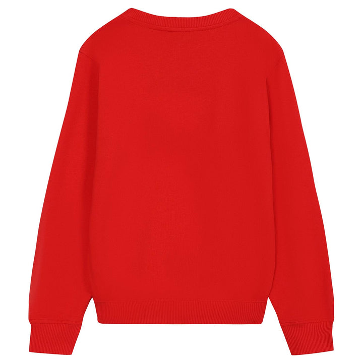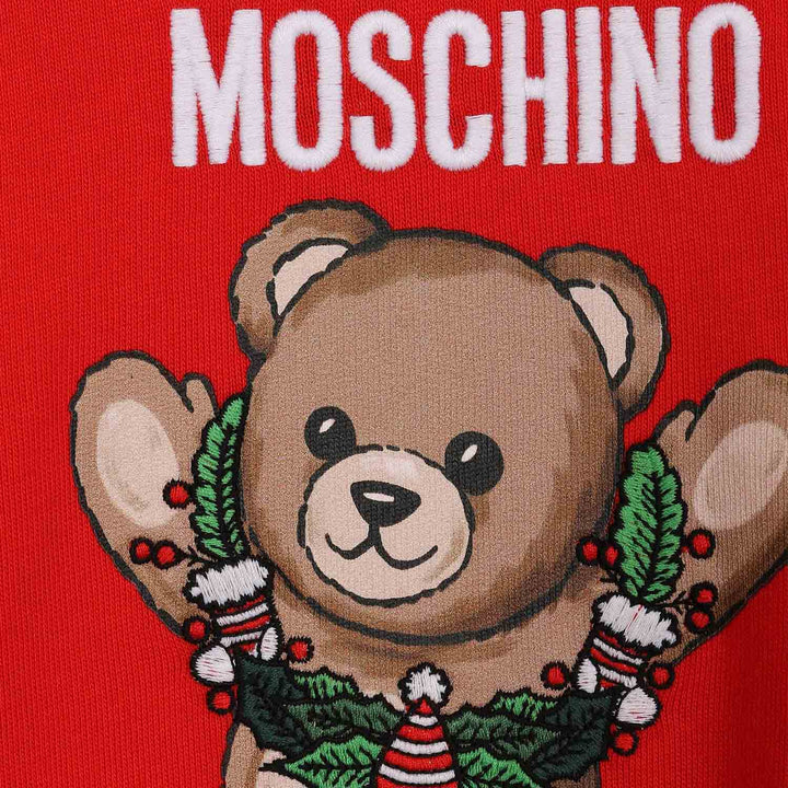 A playful red Sweatshirts featuring Moschinos iconic teddy bear logo, crafted from soft cotton for comfort.