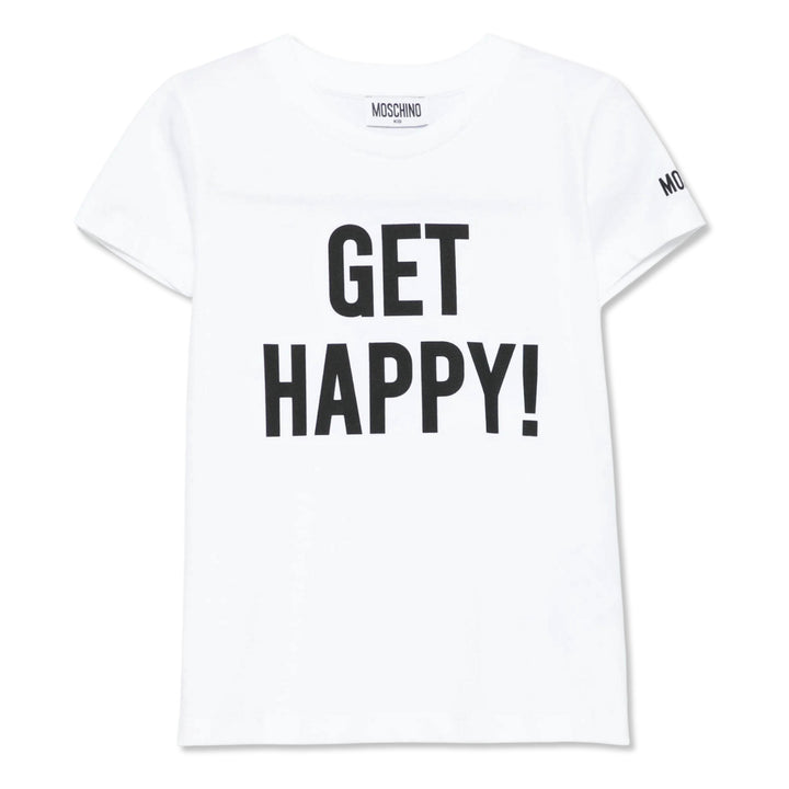 White graphic-print T-shirt with a crew neck, short sleeves, straight hem, and a logo print on the sleeve. Made from 1% cotton for all-day comfort.