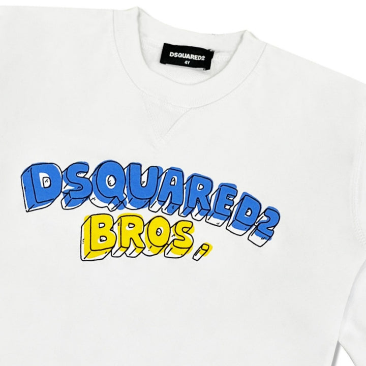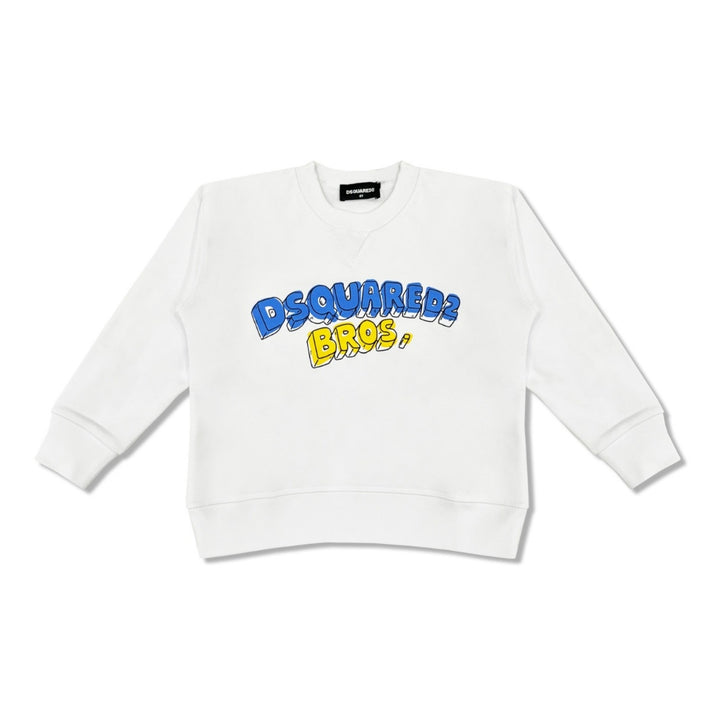 Unisex white logo-print sweatshirt from Dsquared2, crafted from soft and comfortable fabric for everyday wear. Featuring a signature logo design on the front, it offers a relaxed fit with long sleeves and ribbed detailing at the neckline, cuffs, and hem. Perfect for casual outings, layering in cooler weather, or adding a stylish touch to any wardrobe.