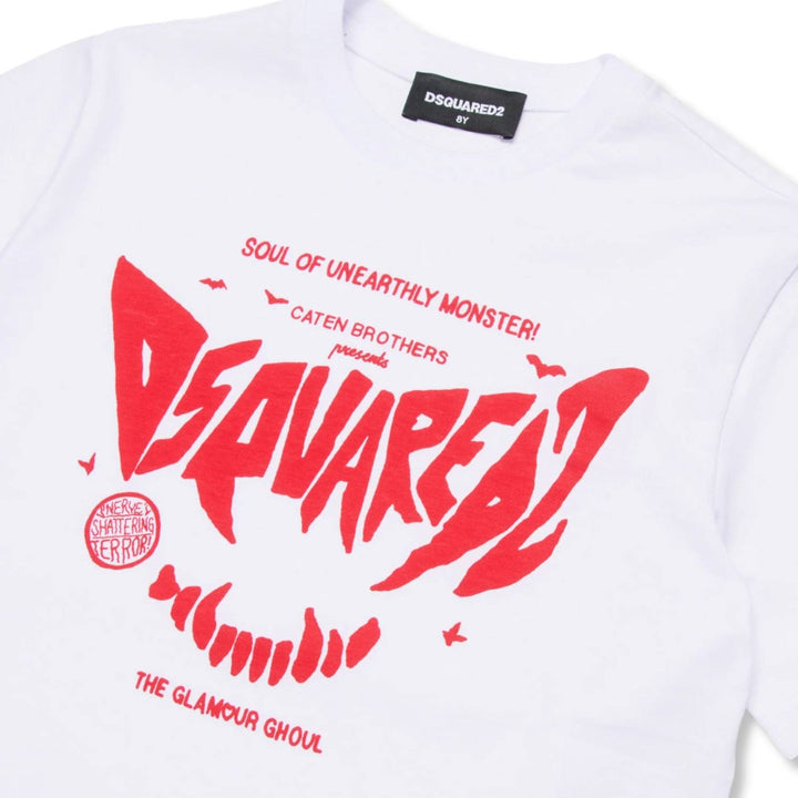 Elevate your casual style with this Dsquared2 unisex white T-shirt, crafted from 100% soft cotton. Featuring the brand's iconic logo print on the front, this tee combines comfort with bold, minimalist design -perfect for everyday wear.