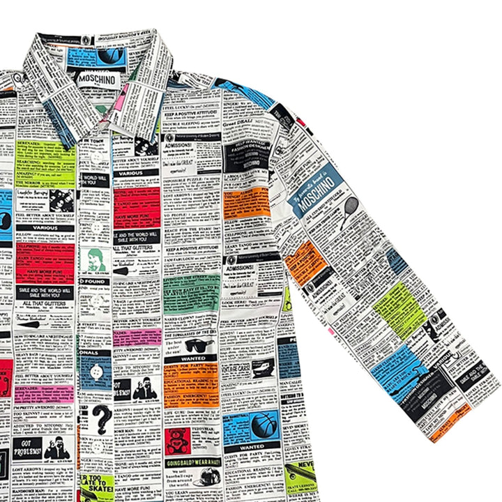 Unisex White Newspaper-Print Shirt