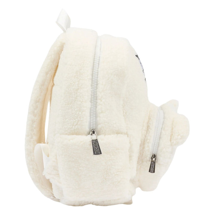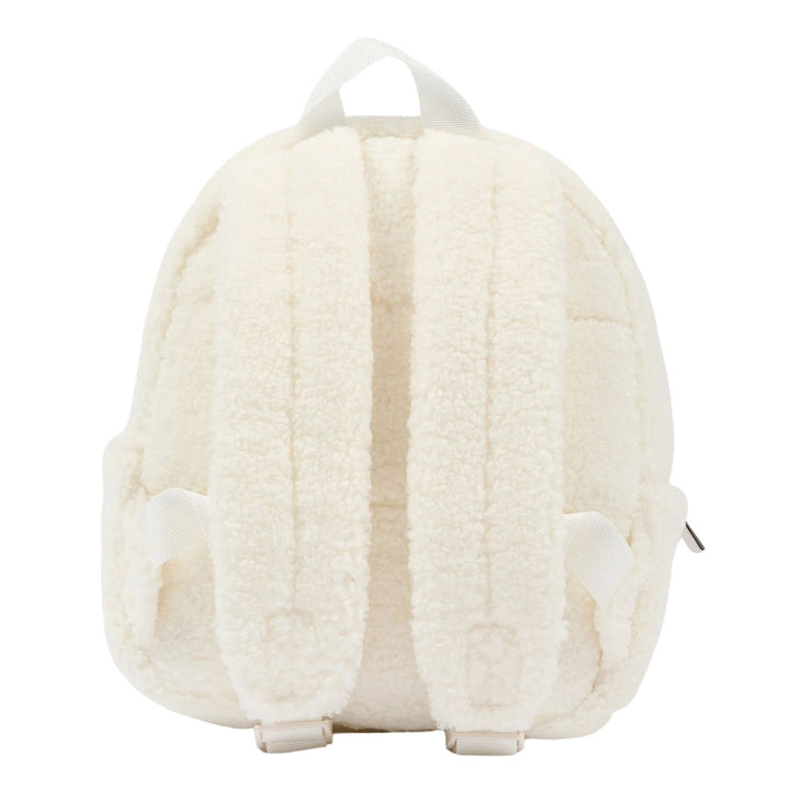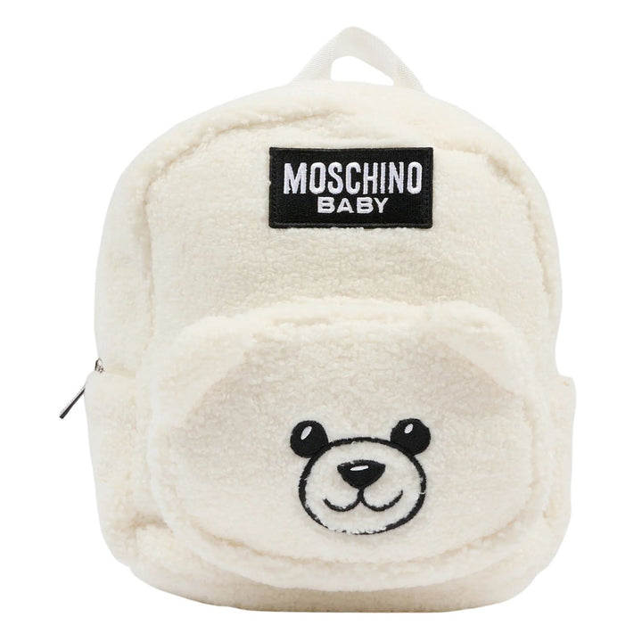 Unisex White Teddy Bear Logo-Patch Backpack