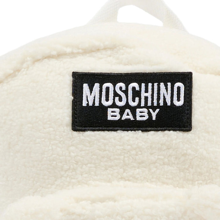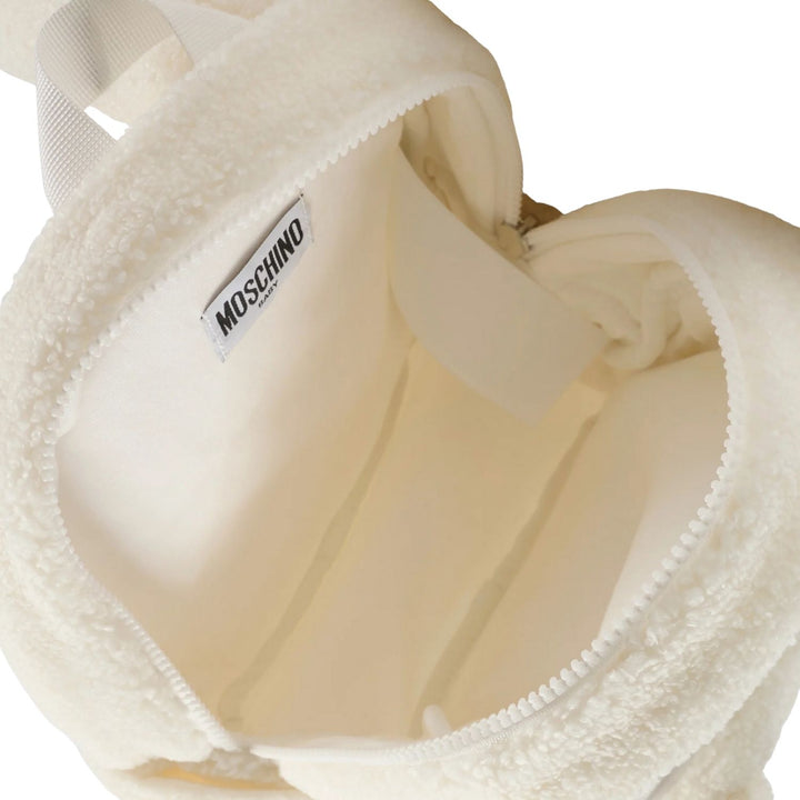The Moschino unisex White backpack showcases the brands iconic teddy bear embroidered logo, adding a playful yet stylish touch. Crafted with practicality in mind, it features roomy compartments and sturdy straps, making it an ideal choice for daily w