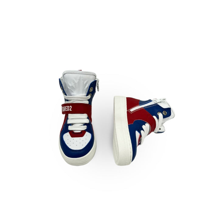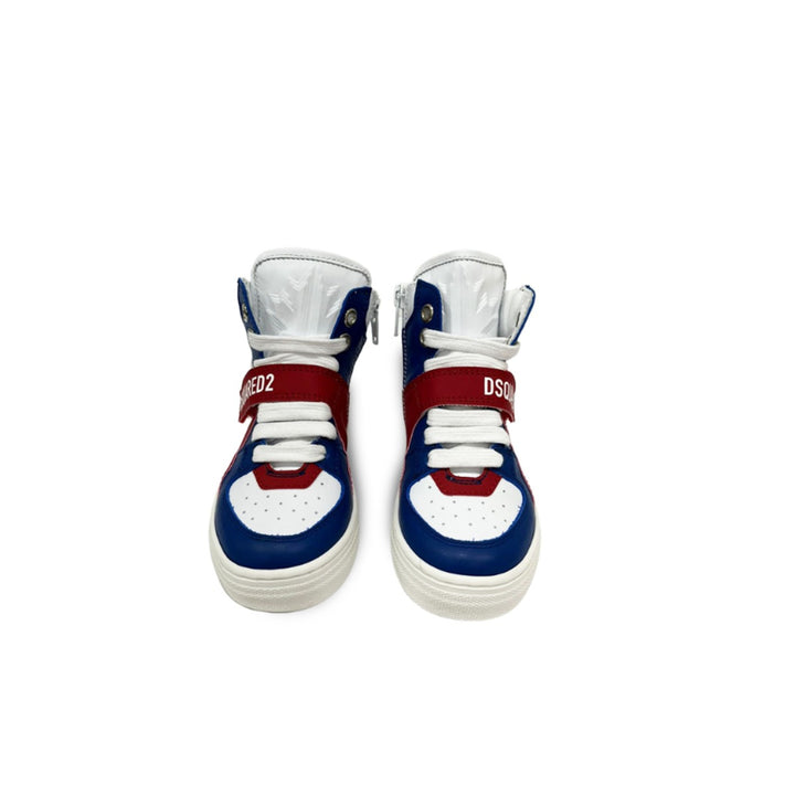 Indulge your kid in comfort and performance with this pair of sneakers from Dsquared2. It is a pair of ankle-length sneakers, designed with a back loop with the signature logo on it. Moreover, for making it easy for the little