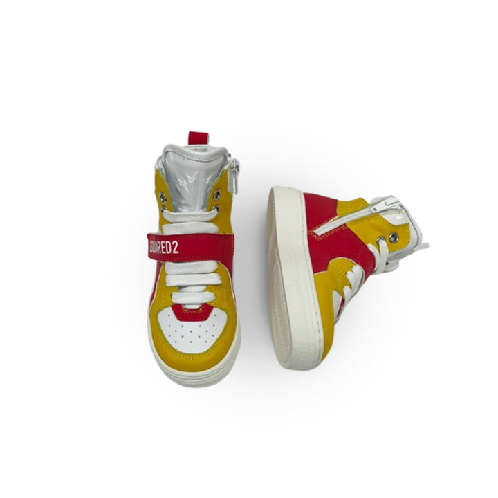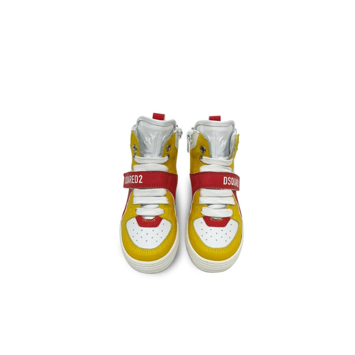 Indulge your kid in comfort and performance with this pair of sneakers from Dsquared2. It is a pair of ankle-length sneakers, designed with a back loop with the signature logo on it. Moreover, for making it easy for the little