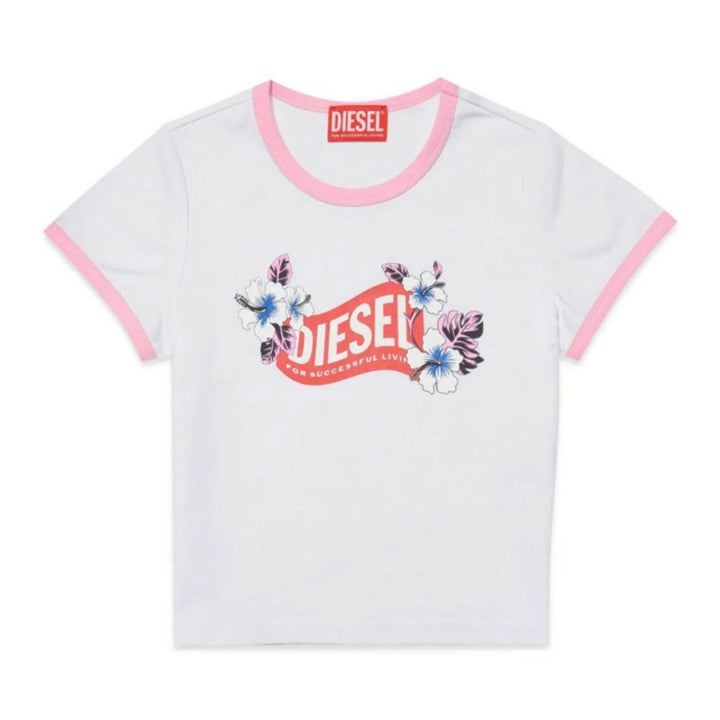 White Jersey T-Shirt With Wave Version Logo And Floral Print