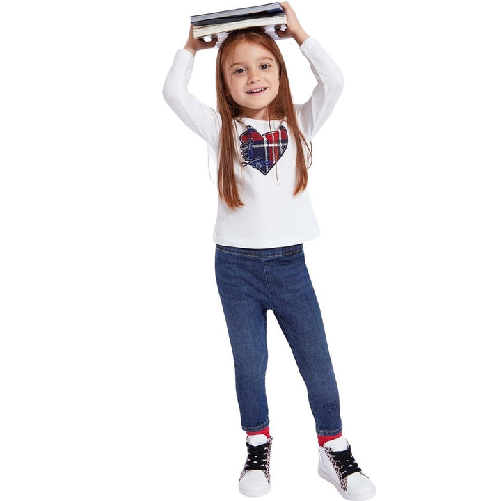 Add versatility to your little one's basic look with this casual T-shirt designed with an appliqued surface, a round neck and full sleeves. The full sleeves white tshirt by Lio Juo is an eye catching outfit to pair with jeans or joggers. The heart de