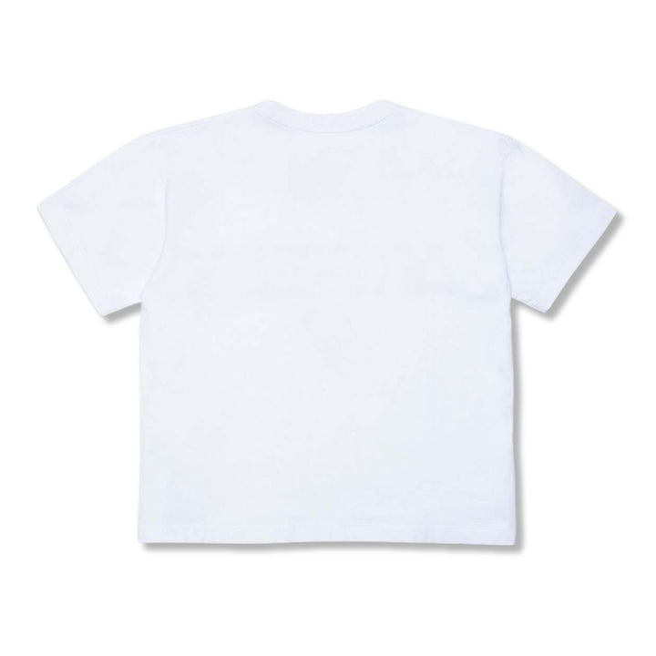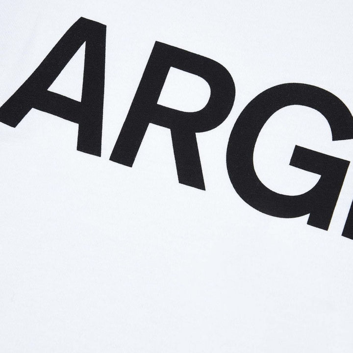 Short-sleeve, crew-neck white cotton jersey T-shirt with contrasting color Margiela 6 “displaced print†front logo print.